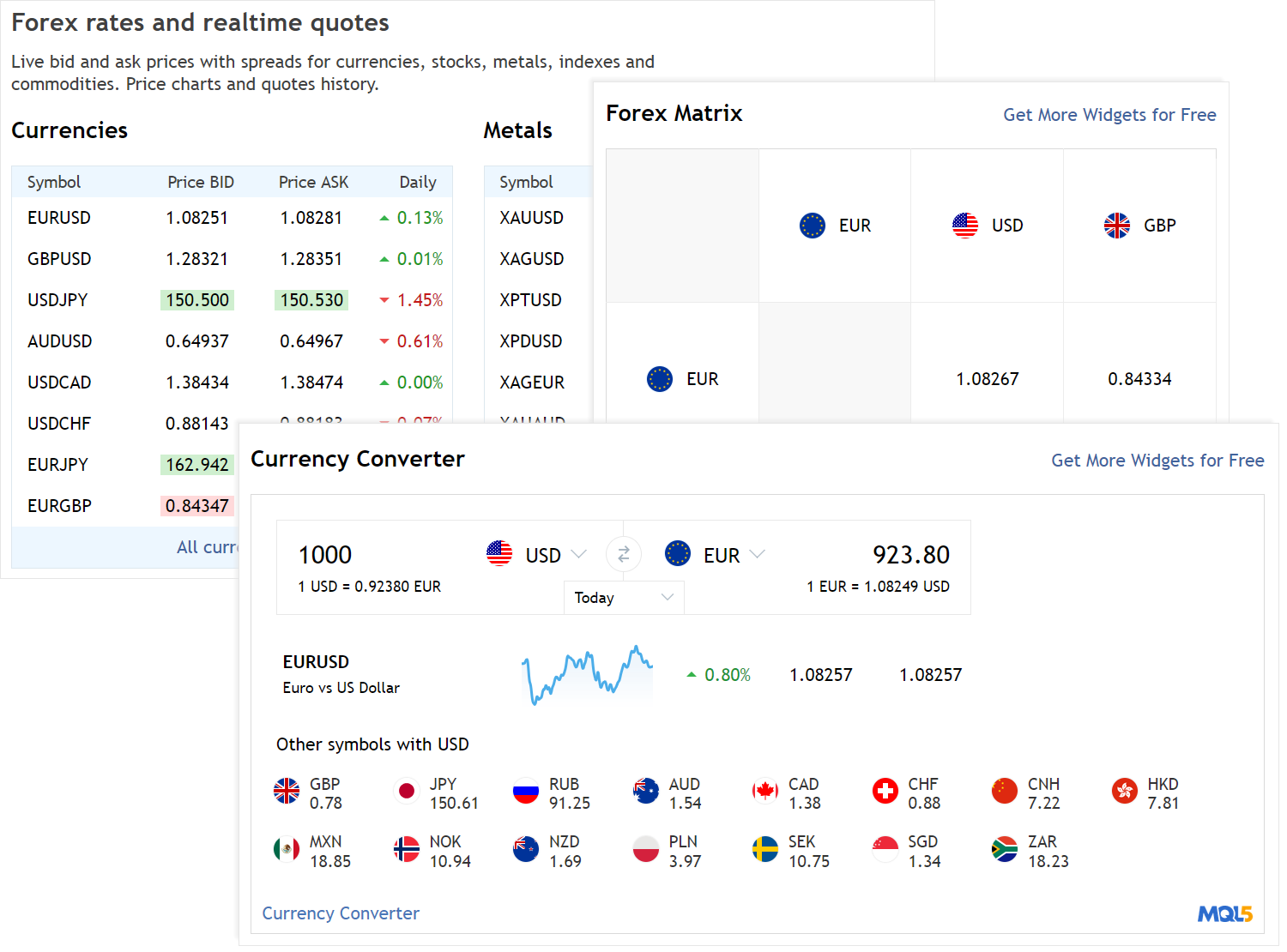 在您的网站或博客上安装金融小工具,使其更吸引访客。数据实时更新,而且不显示广告。可用功能: