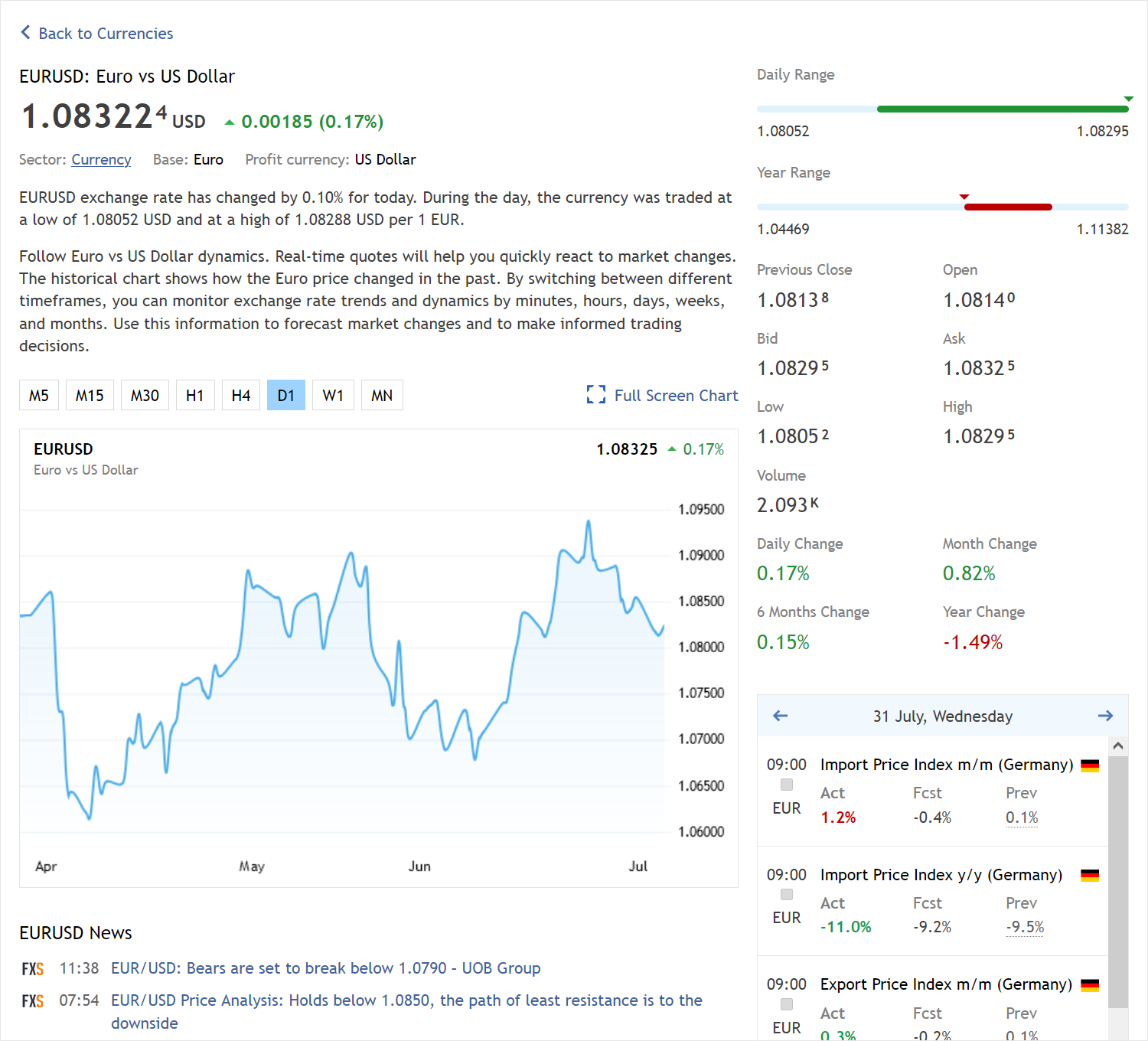 • 最新统计数据,包括最新的市场开盘价、收盘价、买入价、卖出价、最低价和最高价以及成交量。